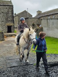 Our last Summer ride on 9 July was a very wet affair, but we are tough in Cumbria and smiled through it all. Our young riders mopped their dripping ponies before they were put back into their stables. And then we had cake! There were tiny presents too for our riders to add to the smiles. Now we are looking forward to starting again in early September.