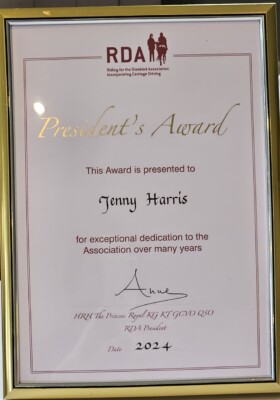 The President’s Award is the most prestigious volunteer award within RDA and is awarded for service of an exceptional nature over a period of over 30 years by the president of RDA, HRH Princess Anne.