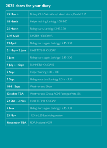 What a delight to welcome back our riders to Westmorland RDA at our new venue – Larkrigg. Lots of smiles, a few nerves and several inches taller, it was so good to see them again. The ponies behaved impeccably and new friendships were quickly made. Thank you to everyone who was able to come along and help make this such a heartwarming occasion. It was wonderful to restart with such a big turnout.