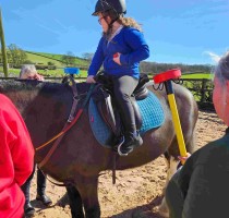 We had another lovely sunny day for our last ride before the Easter break. Our two new ponies, Queenie and Bambam, behaved beautifully. There were walking races and games with poles and beanbags. Rebecca Kemp, our county chair, rode an invisible pony around a serpentine course to lead the way, and Anne made her notes in a sunhat looking more as though she were on the beach! It was a wonderful start to the holidays.
