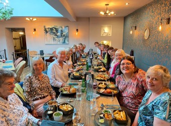 To celebrate our successful and enjoyable riding sessions over the last two terms, our busy group organisers Ann and Joan arranged a social meet up where our volunteers came together to have lunch at the Crooklands Hotel. We were a happy and colourful bunch. It was great to see each other dressed so differently and to have the opportunity for a good old chat.